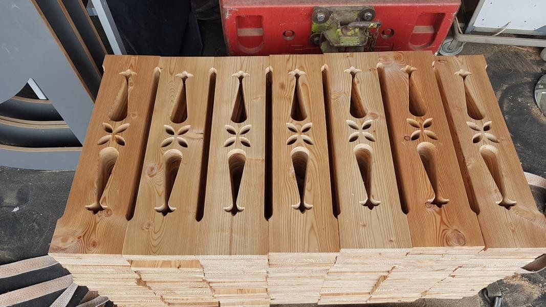 Renovation of a balcony railing, for this purpose 250 new boards were made and milled on the CNC