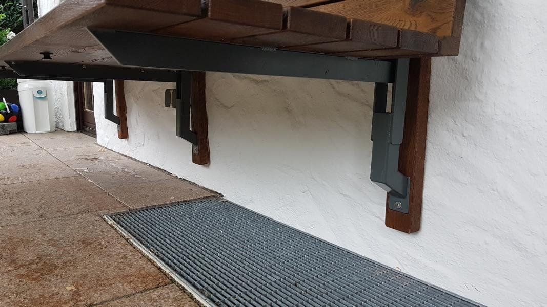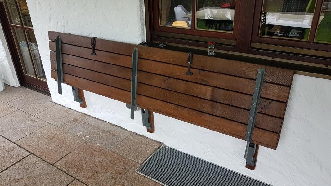 Bench in oak, which is foldable thanks to a special folding fitting.
